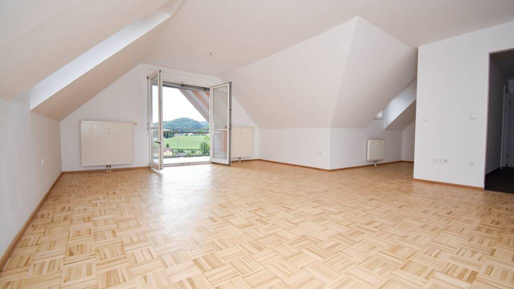 Der großzügige Balkon, von dem Sie einen wunderbaren Blick auf die Gleichenberger Kogeln genießen können, stellt ein weiteres Highlight dieser Wohnung dar ideal, um die Umgebung und die Natur zu genießen.