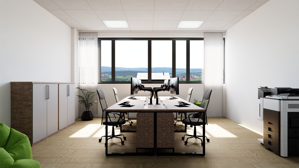 Beleuchtung Büro- und Besprechungsräume: Die Beleuchtung erfolgt mittels Anbau- oder Pendelleuchten