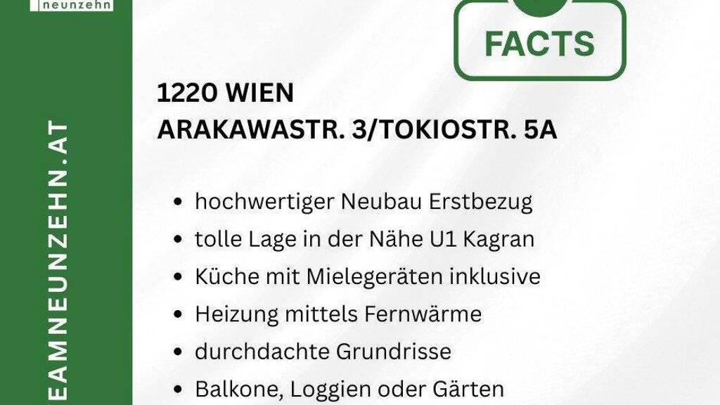 Die Liegenschaft zeichnet sich vor allem durch die ruhige Lage in idealer Vorstadtgegend, in unmittelbarer Nähe zur U1 - Kagran sowie die ausgezeichneten, kompakten Grundrisse aus, wonach sich die Wohnungen auch ideal als Investment für die Vermietung eignen (auch eine Küche ist bereits im Kaufpreis inkludiert). Mit der U-Bahn-Linie U1 ist man perfekt an die Wiener Innenstadt angebunden und erreicht so beispielsweise den Stephansplatz innerhalb von ca. 20 Minuten.