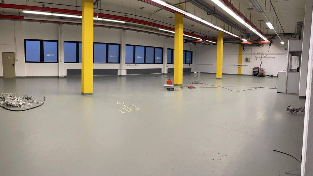 Die Fläche ist ebenerdig zugänglich und bietet durch ihre klare Raumstruktur vielfältige Nutzungsmöglichkeiten. Große Fensterflächen sorgen für eine helle Arbeitsatmosphäre, während robuste Bodenbeläge und ausreichend Starkstromanschlüsse die industrielle Nutzung unterstützen.
