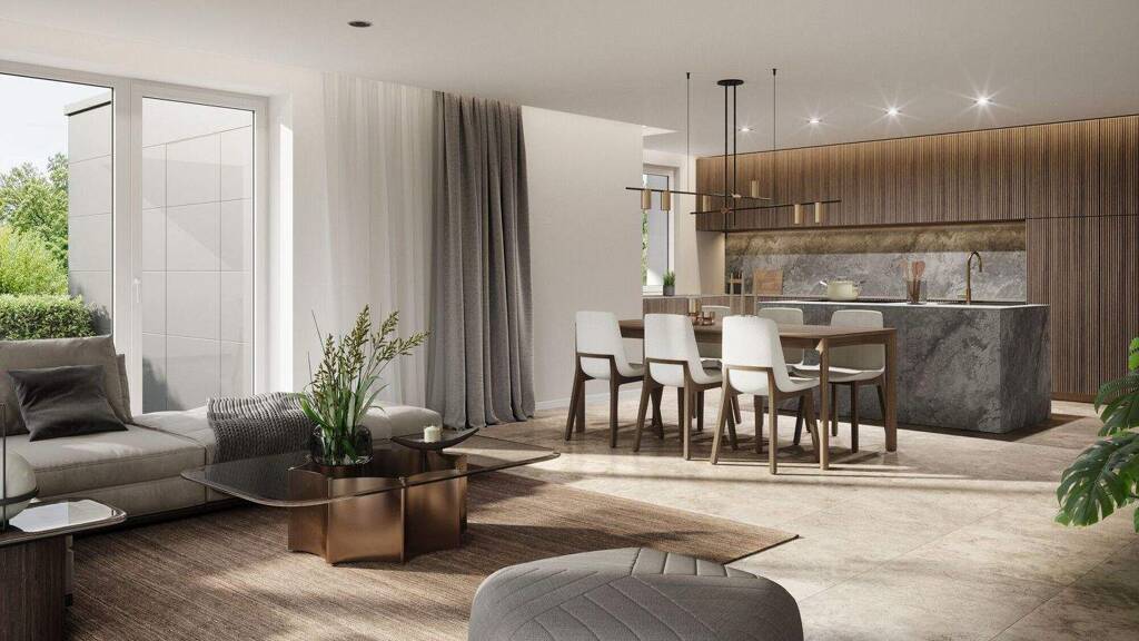 Jede Haushälfte bietet ca. 146 m² Wohnfläche und richtet sich an Familien und Paare, die stilvolles Wohnen in naturnaher Umgebung schätzen. Im Erdgeschoss erwartet Sie ein großzügiger Wohn- und Essbereich mit offener Küche, der durch bodentiefe Fenster viel Tageslicht erhält und den direkten Zugang zu den liebevoll gestalteten Garten- und Terrassenbereichen ermöglicht. Ein Gäste-WC sowie ein praktischer Abstellraum mit Anschlüssen für Waschmaschine und Trockner komplettieren diese Ebene. Das Obergeschoss bietet drei Schlafzimmer, ein Büro, ein modernes Bad sowie zusätzlichen Stauraum - ideal für unterschiedliche Lebensmodelle und individuelle Bedürfnisse.