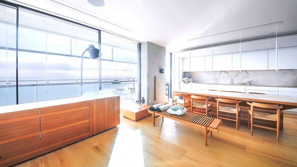 The day area offers a spacious and elegant living room with spectacular sea views, where natural light is the protagonist. The kitchen, integrated in this space, is fully equipped with GAGGENAU appliances and high quality Swiss furniture, combining design, functionality and sophistication. The living room is equipped with a Home Cinema system, ideal for entertainment and social life. Next to this area there is a guest toilet.