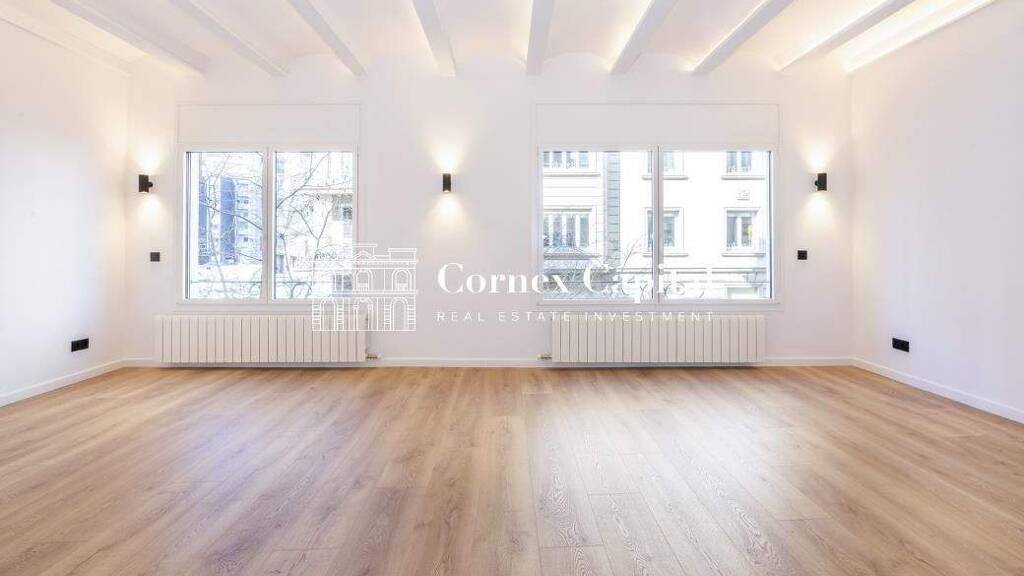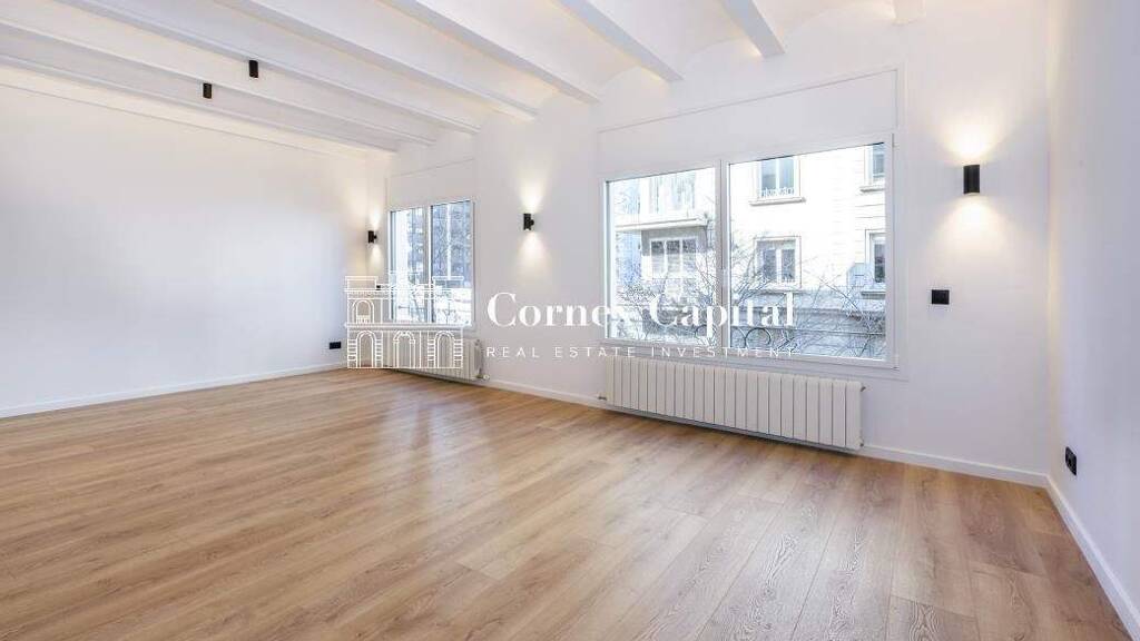 Hochwertiges, vollständig renoviertes Loft/Fünfzimmer in Les Corts, nur einen Schritt von Francesc Maciá entfernt. Sorgfältiges Design verbindet Luxus und Komfort mit großzügigen, lichtdurchfluteten Räumen, exzellenten Oberflächen und hochwertigen Materialien. Die Räume profitieren von enormem natürlichem Lichteinfall dank der großen Fensterfronten, wodurch ein angenehmes und behagliches Zuhause entsteht. Anspruchsvolle Immobilie mit sehr bequemer und funktionaler Aufteilung, Wohn- und Schlafbereiche sind getrennt. Die Fläche beträgt 152,29 m². Es gibt 4 Zimmer (eine Hauptsuite von 15,52 m² mit Bad und Ankleidezimmer, zwei großzügige Doppelzimmer und ein Arbeitszimmer), ein zusätzliches Vollbad, das beiden Doppelzimmern dient, und ein Gäste-WC. Großzügiges Wohnzimmer-Esszimmer von 31,72 m², verziert mit einer verputzten katalanischen Kuppel, die klassische Eleganz evoziert. Inklusive maßgefertigter Bibliothek. Küche von 14 m², organisiert und funktional, direkt neben dem Wohnzimmer gelegen. Möblierung von Santos. Haltbarkeit und Widerstandsfähigkeit dank der Arbeitsplatten- und Verkleidung aus hochwertigem 12 mm Keramikgiess verbunden. Voll ausgestattet mit Siemens-Haushaltsgeräten. Die Küche ergänzt sich durch einen Hauswirtschaftsbereich. Ganzjähriger thermischer Komfort. Zentralheizung durch Aluminiumradiatoren. Klimaerkennung durch Kanäle, effizienter Wärmepumpenbetrieb. Temperatur jeder Zimmer unabhängig regulierbar. Wunderschöne Parkettlaminatsfußböden in Eichenoptik, Beige- und Naturholztonen, die Wärme in jeden Raum bringen. Außergewöhnliche Lage in Les Corts, einer der begehrtesten Gegenden Barcelonas, vollständig etabliert, mit allen Dienstleistungen in der Nähe, grünen Zonen, Gastronomie, Einkaufszentren, Unterhaltung und Kultur, hervorragende Anbindungen. Luxus, Eleganz und Exzellenz.