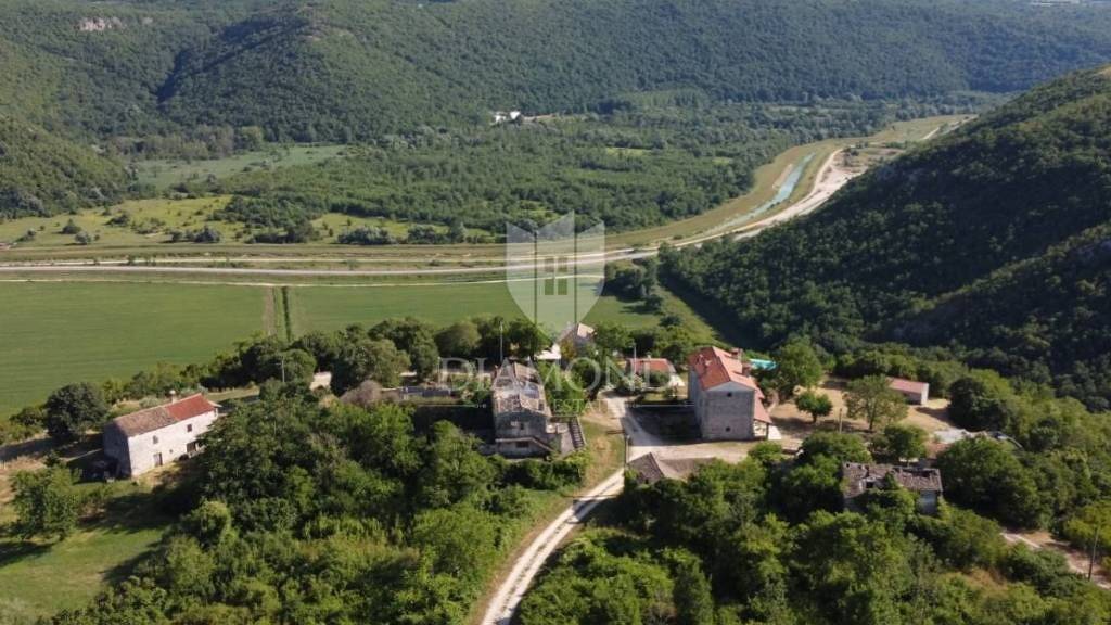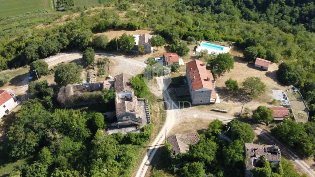 Das Anwesen befindet sich in einem kleinen istrischen Dorf mit herrlichem Panoramablick auf das Mirna-Tal und die Hügel, umgeben von Natur und Grün. Es erstreckt sich auf einem Grundstück mit einer Gesamtfläche von 114.400 m2 und besteht aus 5 Einheiten. Die erste Einheit besteht aus landwirtschaftlichen Flächen neben der Straße, die zum Dorf führt, mit einer Gesamtfläche von 26.790 m2, die aufgrund ihrer Lage und Fläche ideal für den Anbau von Oliven und Weintrauben geeignet ist. Die zweite Einheit besteht aus Bauland mit einer Fläche von 11.500 m2 für Gastronomie- und Tourismuszwecke. Im Zentrum des Dorfes befindet sich eine dritte Einheit mit einer Fläche von 3.240 m2, auf der 5 typisch istrische Häuser zur Renovierung gebaut wurden. Die vierte Einheit besteht aus einem Steinhaus, das auf einem Baugrundstück von 2.150 m2 mit Blick auf die Hang- und Waldfläche von weiteren 45.000 m2 errichtet wurde. Die fünfte und letzte Einheit besteht aus interessanten und abwechslungsreichen Grundstücken in Dorfnähe mit einer Gesamtfläche von ca. 25.760 m2.