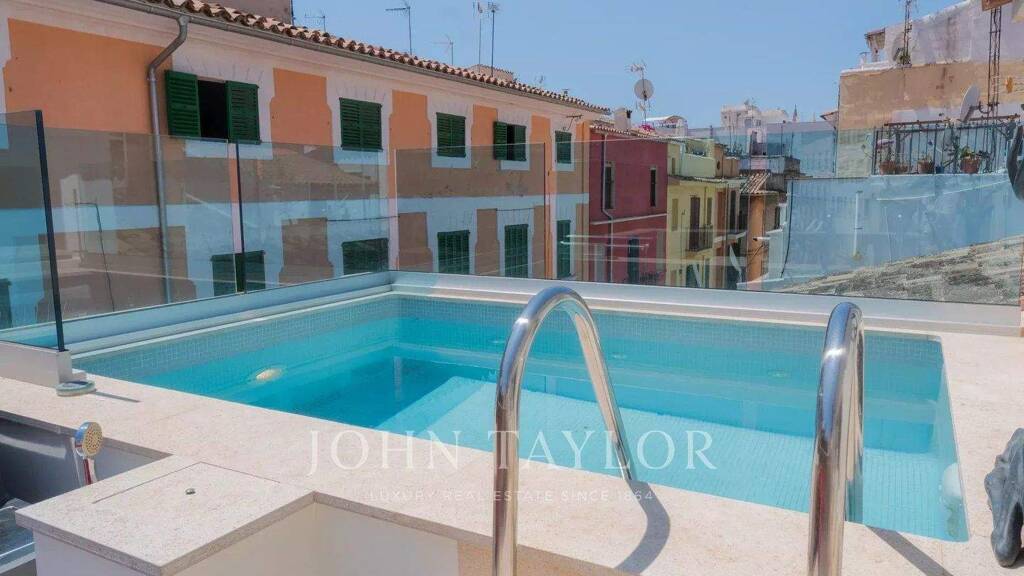 Dieses fantastische Einfamilienhaus bietet 5 geräumige Schlafzimmer mit 4 Badezimmern en suite. Die beiden Hauptschlafzimmer verfügen über ein großes Ankleidezimmer mit Balkon und Blick auf das historische Zentrum von Palma. Es bietet einen großen Wohnbereich, ideal um das gesellschaftliche Leben und unglaubliche Abende zu genießen, dank seiner großen Fenster mit Blick auf das Stadtzentrum. Weiterhin gibt es eine große Sonnenterrasse mit privatem Swimmingpool und Chill-out-Bereich sowie eine Garage mit Platz für zwei Pkws. Weitere Ausstattungsmerkmale sind: Fußbodenheizung, Wasserenthärter, Domotik-Anlage und Klimaanlage. Zögern Sie nicht uns zu kontaktieren, Sie werden sich in diese Immobilie verlieben.