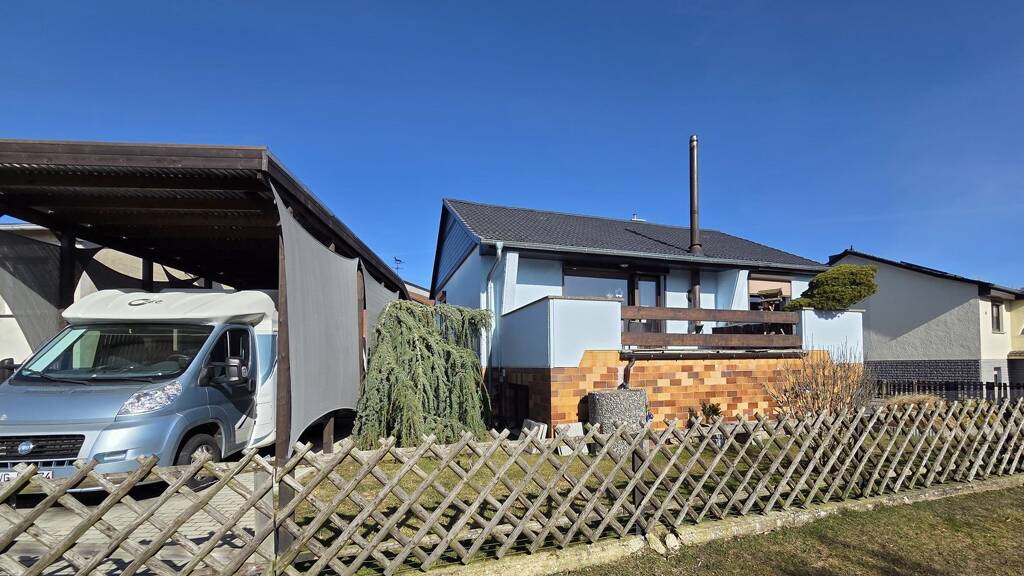 Der Außenbereich lässt keine Wünsche offen. Neben der einladenden Terrasse verfügt das gepflegte Grundstück über einen eigenen Brunnen und einen Pool. Besonders attraktiv für Fahrzeugliebhaber ist das umfassende Stellplatzangebot. Neben der integrierten Garage stehen ein PKW-Carport sowie ein großzügiger Wohnmobil-Carport zur Verfügung.