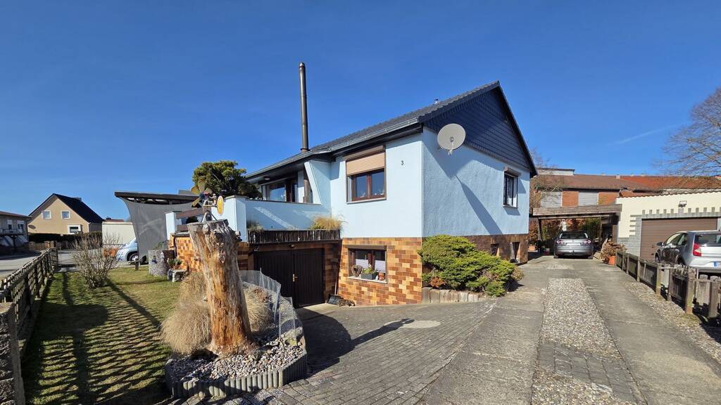 Freistehendes Einfamilienhaus mit Keller, 5 Zimmern, 2 Garagen, Werkstatt und 2 Carports