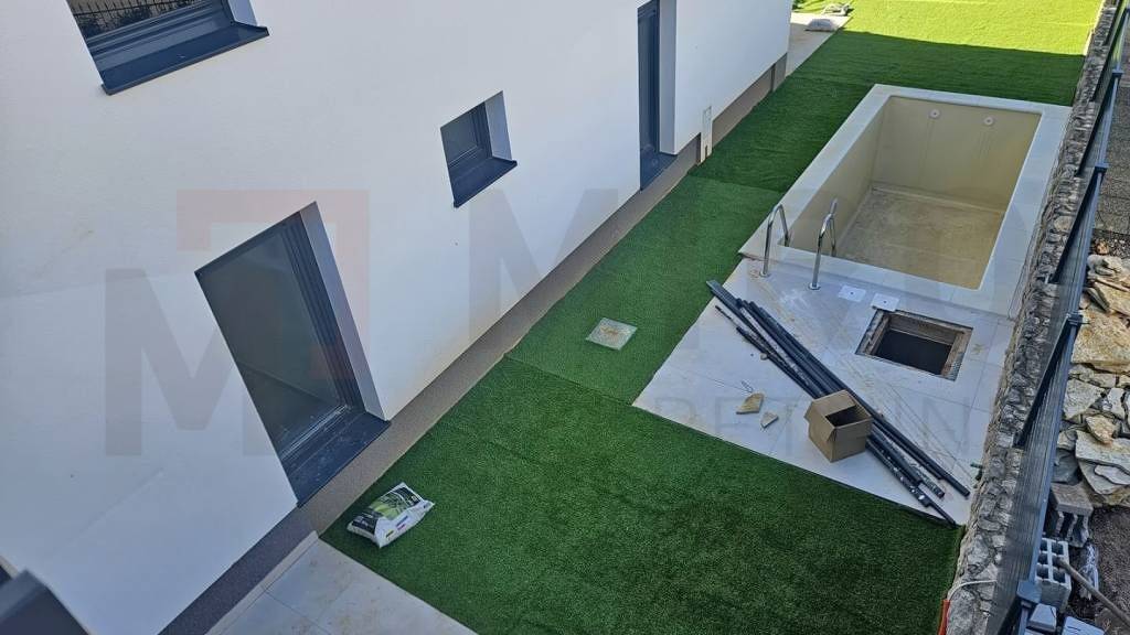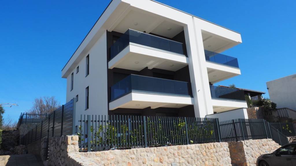 Insel Krk, Omisalj, neu gebaute Erdgeschosswohnung (67 m²) mit Pool, Garten und wunderschönem Meerblick, in attraktiver Lage, 150 m vom Strand entfernt. Die Wohnung besteht aus Wohnzimmer, Küche, Esszimmer, zwei Schlafzimmern, Bad, WC und Terrasse mit Zugang zum Pool mit Liegewiese. Im 80 m² großen Garten befindet sich ein kleiner Schuppen (20 m²). Gesicherter Parkplatz für zwei Autos. Hochwertige Bauweise und Ausstattung, PVC-Fenster, ALU-Eingangstür, Fußbodenheizung, Klimaanlage, Parkplatz. Die Wohnung ist mehrwertsteuerpflichtig. Der Eigentümer garantiert ordnungsgemäße Eigentumsdokumente. Besuchen Sie uns und finden Sie die Quadratmeterzahl Ihres Zuhauses!