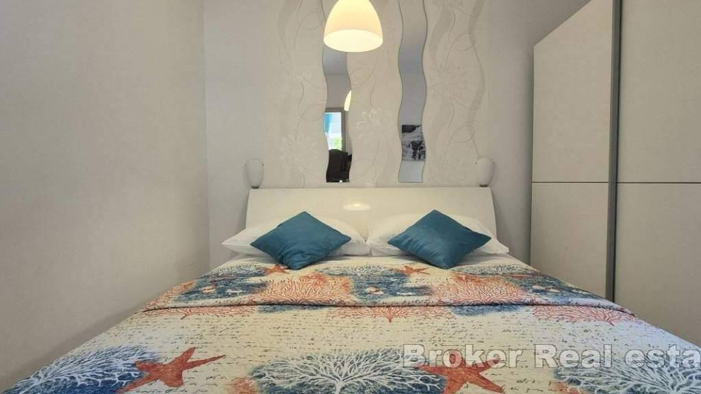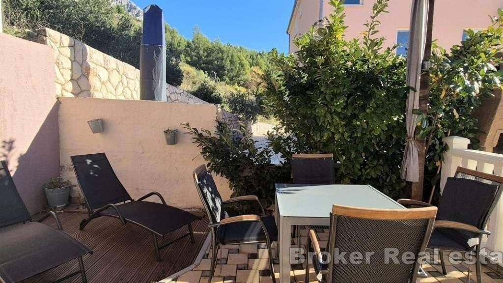 Zum Verkauf steht eine Doppelhaushälfte mit Meerblick, gelegen in einer ruhigen Umgebung, ideal zum Entspannen. Vom Strand und Meer sind es in der Luftlinie nur 250 Meter, während das Zentrum von Omis fünf Kilometer entfernt ist.
