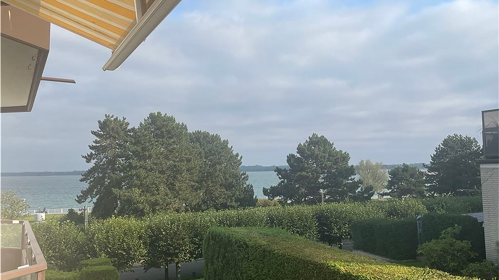 Der nach Süd-Osten ausgerichtete Balkon ist windgeschützt, überdacht und mit einer elektrischen Markise ausgestattet, die sich an sonnigen Tagen Schatten spendet. Meerblick, Möwen und das Rauschen der Wellen entschleunigen garantiert.