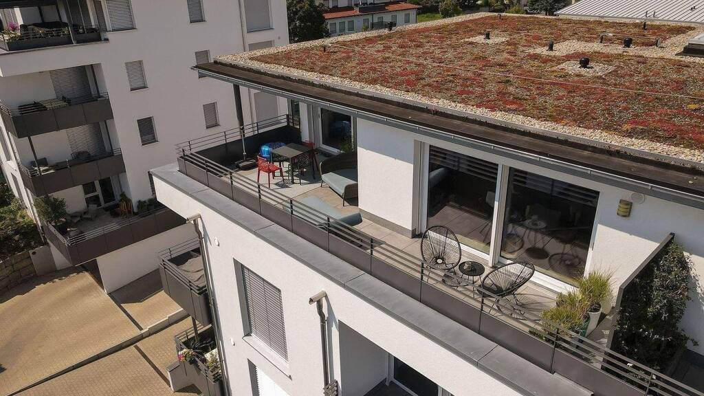 Zum Verkauf steht ein atemberaubendes Penthouse mit Süd-West-Ausrichtung in einer absoluten Toplage von Gerbrunn. Das Haus wurde im Jahre 2021 fertig gestellt und im besonders nachhaltigen KfW-55 Standard errichtet. Die Wohnung wurde sehr geschmackvoll mit Eicheparkett, hochwertigen Fliesen und einer tollen Küche ausgestattet. Fußbodenheizung, eine Lüftungsanlage und hochwertige Sanitärgegenstände runden das Gesamtkonzept ab. Vom gesamten Wohn Essbereich aus hat man einen tollen Blick durch die riesigen Schiebetüren Richtung Süden ins Haslachtal. Die großzügige Dachterrasse ist teilweise überdacht und lädt bei jedem Wetter zum verweilen ein.