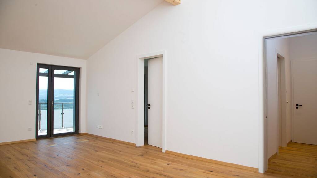 Natur und ausgefallene Architektur vereinen sich in dieser Wohnanlage zu einem Rückzugsort, der höchste Wohnansprüche erfüllt. Modernen Ausstattungsmerkmale, ausgesuchte Materialien vom Boden über das Bad bis hin zu den Türen überzeugen bei dieser Immobilie. Die angebotene 3-Zimmerwohnung im Dachgeschoss des 13-Parteien Mehrfamilienhauses besticht durch einen durchdachten Grundriss mit einem modernen, offenen Wohn-, Ess- und Kochbereich für einen kommunikativen Alltag. Das lichtdurchflutete Ambiente zieht sich durch die gesamte Wohneinheit und somit auch in den beiden hellen Schlafzimmern. Von diesen gelangt man jeweils auf zwei sonnige Balkone, welche mit Ihrer Fernsicht als Highlight zum Verweilen einladen. Stauraum bietet neben dem großzügigen Flur mit maßangefertigtem Einbauschrank auch ein separater Abstellraum – so auch ein der Wohnung zugeordnetes Kellerabteil im Untergeschoß. Ein Außenstellplatz kann zu einem Kaufpreis von 10.000,00 € hinzu erworben werden und rundet somit die praktikable Immobilie ab. Die Wohnanlage erfüllt den KfW 55 Standard und wird voraussichtlich im Herbst 2025 fertiggestellt.