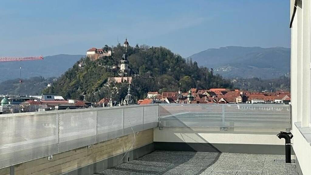 * BLICK ÜBER GRAZ ! Terrasse im 11. Stock für alle Bewohner des Hauses nutzbar.
