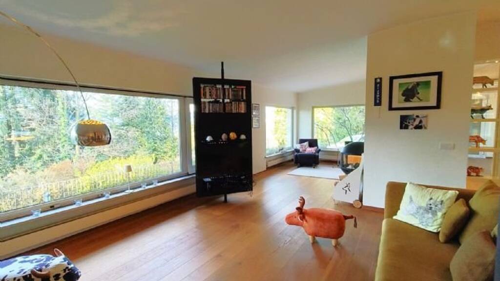 Über den Haupteingang in ein großes Atrio erreicht man das Herzstück des Hauses: ein großer, in verschiedene Zonen gegliederter Open Space, der duruch seine großen Fensterfronten bezaubert und sofort das Gefühl verleiht, von der Natur umarmt zu werden.