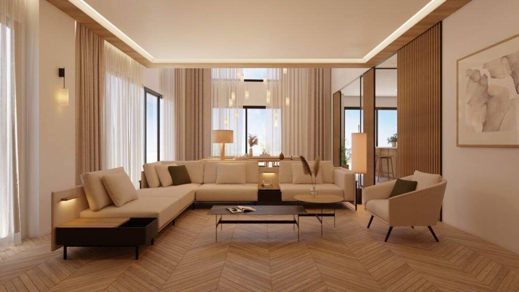 Die Penthouse-Wohnungen zeichnen sich durch ihre hervorragende Anbindung zum glitzernden Mittelmeer aus. Der offene Raumkonzept und die erstklassigen Materialien schaffen eine Atmosphäre, die den gehobenen Lebensstil ideal verkörpert und die Innen- und Außenbereiche harmonisch miteinander verbindet. Großflächige Fenster und durchdachte Grundrisse sorgen für lichtdurchflutete Wohnräume, die ein unvergleichliches Wohlbefinden und erstklassigen Komfort bieten. Die offen gestaltete Küche und das stilvolle Wohnzimmer bilden das Herzstück dieser beeindruckenden Residenzen.