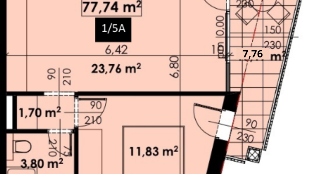 Gesamtfläche: 41,09 m² + 7,6 m² Terrasse