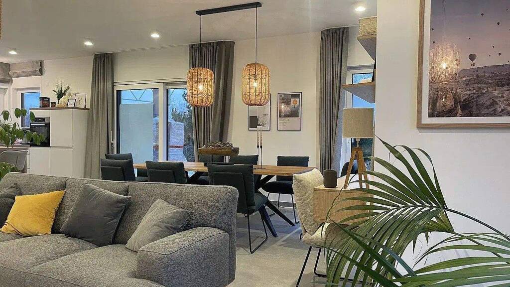 Tauchen Sie ein in die faszinierende Welt des Home 5 und verwirklichen Sie Ihre Wohnträume. Das clever gestaltete und lichtdurchflutete Erdgeschoss vereint auf harmonische Weise ein behagliches Wohnzimmer, einen einladenden Essbereich sowie eine moderne Küche in einem Raum, der eine entspannte und gemütliche Atmosphäre schafft. Im Obergeschoss erwarten Sie drei freundlich gestaltete Schlafzimmer und ein lichtdurchflutetes Badezimmer. Mit einer Gesamtfläche von nahezu 144 m², verteilt über zwei Etagen und insgesamt vier Zimmern, bietet dieses zeitgemäße Einfamilienhaus den perfekten Rückzugsort für Ihre Familie.