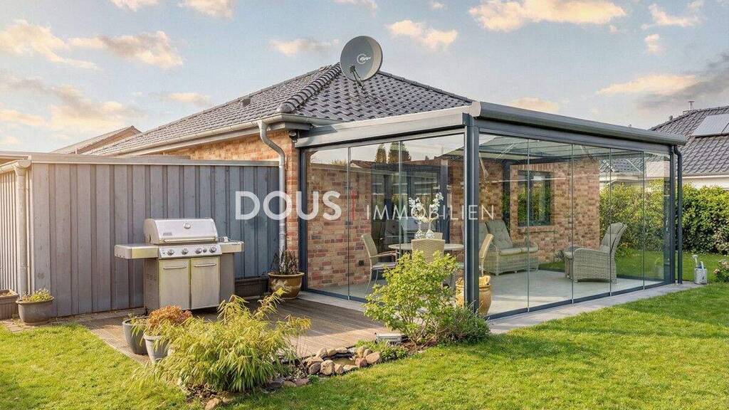 Dieser wunderschöne Bungalow ist vielleicht genau das, was Sie suchen! Das Wohnhaus wurde 2020 in massiver Bauweise mit Klinkerfassade errichtet und überzeugt durch seine Energieeffizienzklasse A+. Dank der modernen Bauweise und Technik profitieren Sie von äußerst niedrigen Betriebskosten - aufgrund der modernen Luftwärmepumpe liegen die Strom- und Heizkosten bei nur ca. 90,00 € pro Monat. So genießen Sie planbare monatliche Kosten und führen eine langfristig zukunftsorientierte Lebensweise. Der offene und barrierefreie Grundriss ist ideal für eine kleine Familie oder ein Ehepaar geeignet. Alle verbauten Materialien sind hochwertig und mit Liebe zum Detail ausgesucht. Eine offene Küche bildet das Kommunikationszentrum des Hauses. Küche, Essbereich und Wohnzimmer gehen fließend ineinander über und schaffen ein großzügiges, lichtdurchflutetes Wohngefühl. Besonders hervorzuheben ist der im Jahr 2023 nachträglich angebaute Wintergarten, der die Terrasse stilvoll überdacht und den Wohnraum harmonisch erweitert. Von hier aus genießen Sie einen wunderbaren Blick in den Garten und können alle Jahreszeiten in vollen Zügen auskosten. Das weitere Raumangebot umfasst ein Schlafzimmer, ein weiteres Schlafzimmer oder Büro, zwei Badezimmer sowie einen Hauswirtschaftsraum. Die Lage der einzelnen Zimmer entnehmen Sie bitte dem aussagekräftigen Grundriss. In der Größe des bestehenden Geräteschuppens kann bei Bedarf ein weiteres Zimmer angebaut werden, die GRZ lässt dies zu. Das Haus steht auf einem 508m² großen Erbpachtgrundstück. Der pflegeleicht angelegte Garten ist geschmackvoll gestaltet und bietet gleichzeitig Gestaltungsspielraum - eine Brunnenbohrung zur Gartenbewässerung ist vorhanden und könnte die Unterhaltskosten zusätzlich reduzieren. Ihr Auto parkt komfortabel im direkt an das Haus angrenzenden Carport. Sie erhalten langfristige Planungssicherheit, da der Erbpachtvertrag noch bis zum 31.12.2092 läuft. Aktuell beläuft sie der Erbpachtzins jährlich auf 2.090,70€.