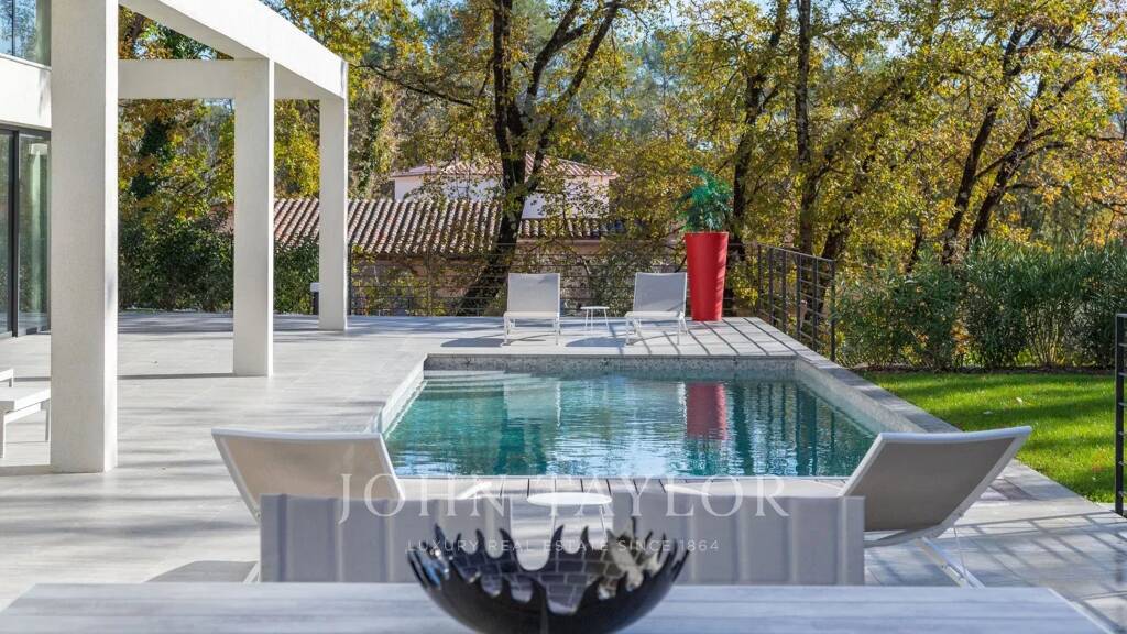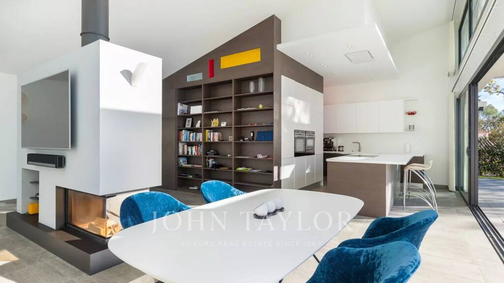 Jolie villa contemporaine neuve de plain-pied de 220 m² environ sur un terrain plat de 2500 m² avec piscine. Située à Roquefort-les-Pins proche de Valbonne, cette villa orientée plein sud est entièrement climatisée, et meublée avec goût. Elle peut accueillir jusqu'à 8 personnes dans 4 grandes chambres.