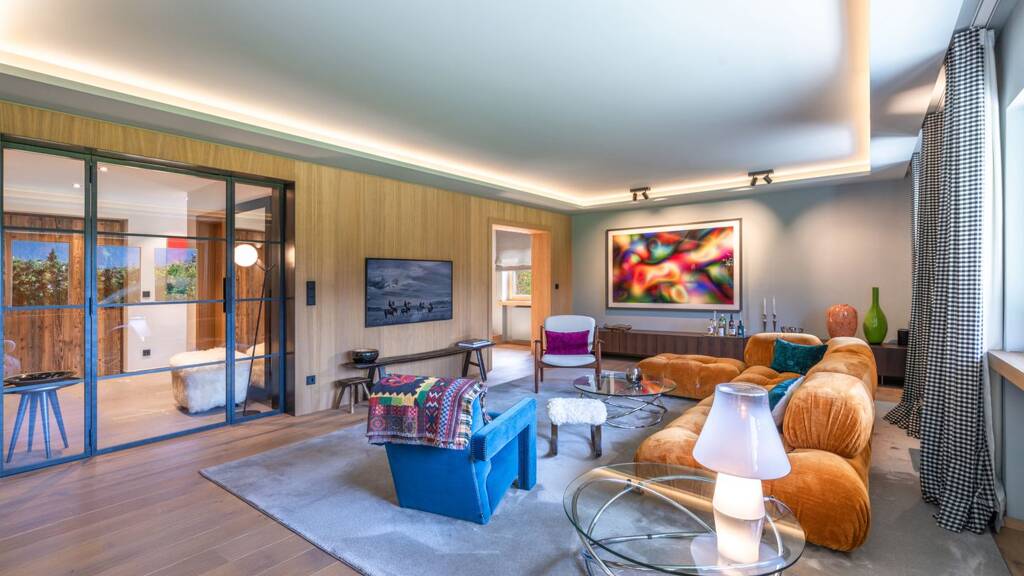 Auf einem großzügigen Grundstück von 1.331?m² vereinen sich ein Haupthaus und ein charmantes Gästehaus zu einem harmonischen Ensemble. Die Wohnfläche von rund 390?m² verteilt sich auf fünf Schlafzimmer und vier Bäder, ergänzt durch weitläufige Wohn- und Essbereiche mit hochwertiger Ausstattung und stilvoller Gestaltung. Edle Materialien, klare Linien und eine warme, moderne Interpretation des alpinen Stils prägen das Ambiente.