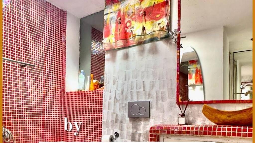 here, no car is needed to enjoy the gentle island life: the sea is just steps away. as you descend the stairs, you'll first discover a powder room and a dressing area, followed by a spacious bedroom and shower room, designed to combine comfort and serenity. the house is fully air-conditioned, and a wood-burning stove completes the atmosphere on those rare cool winter evenings, as ibiza remains faithful to its sunny climate.