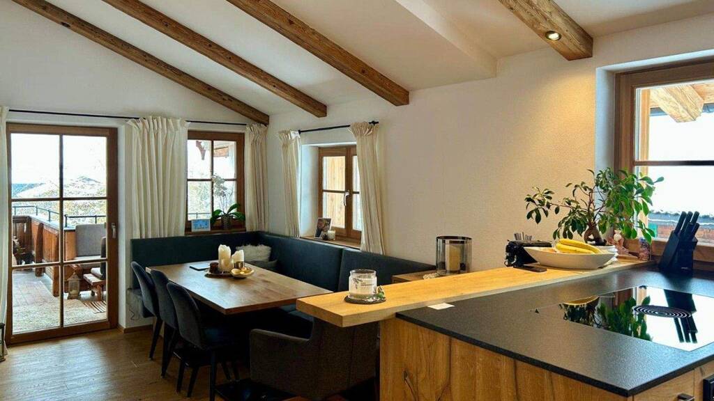 Die Wohnung beeindruckt durch den fantastischen Blick auf das KitzbĂĽheler Horn und Astberg.