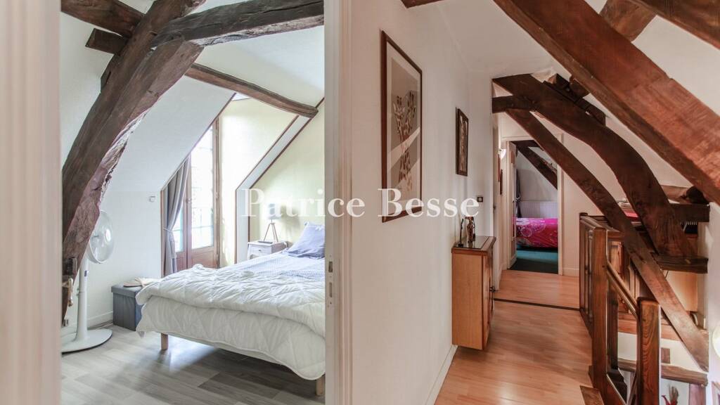 On one side, topped with a Burgundy-tile gable roof with three hipped dormer windows, one of which is protected by a guardrail, the main two-storey rubble masonry house is adorned with exterior brick window surrounds, while large small-paned windows bathe its interior with light. With an inhabitable surface area of approximately 150 m², the house is flanked by a former bread oven, which repeats the same ornamental features as the house. A more recent extension extends the living room towards the garden onto which large picture windows look out. A stone patio surrounds the building, while an external stone staircase leads to a vaulted cellar.
