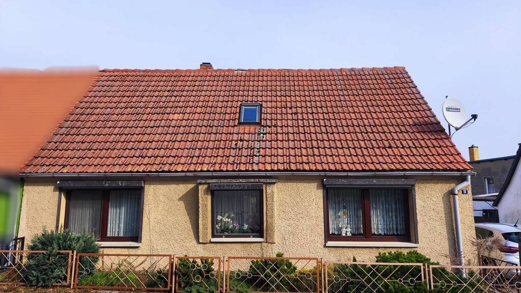 Willkommen im neuen Heim! Der Hauseingang ist hofseitig gelegen; durch die angebaute Veranda gelangen Sie ins Haus. Der Flur heißt sie Willkommen mit viel Tageslicht und schöner Holztreppe. Rechts befinden sich zwei Schlafzimmer. Links gelangen Sie zunächst in die Küche und dann ins Tageslichtbad. Straßenseitig liegt das geräumige Wohnzimmer. Im Obergeschoss gibt es ein gemütliches Zimmer, den Zählerschrank im Flur und Ausbaureserve für ein weiteres großes Zimmer.