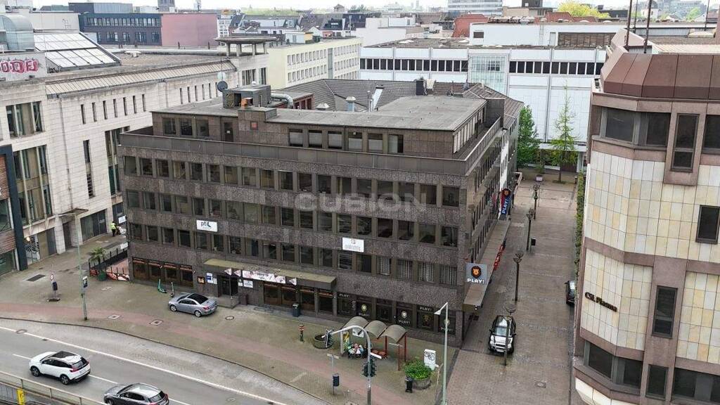 Die Immobilie befindet sich in zentraler Innenstadtlage von Duisburg - direkt gegenüber dem Rathaus und nur wenige Schritte von der belebten Münzstraße sowie der Königsgalerie entfernt. Eine hervorragende Erreichbarkeit ist durch die unmittelbare Nähe zur U-Bahn-Station "Duisburg-Rathaus" gewährleistet, die sich direkt vor dem Gebäude befindet. Für Autofahrer stehen ein öffentlich zugänglicher Parkplatz sowie ein Parkhaus in direkter Umgebung zur Verfügung. Der Hauptbahnhof ist fußläufig in etwa 15 Minuten erreichbar, zudem besteht eine schnelle Anbindung an die Autobahn A40 über die nahegelegene Steinsche Gasse.