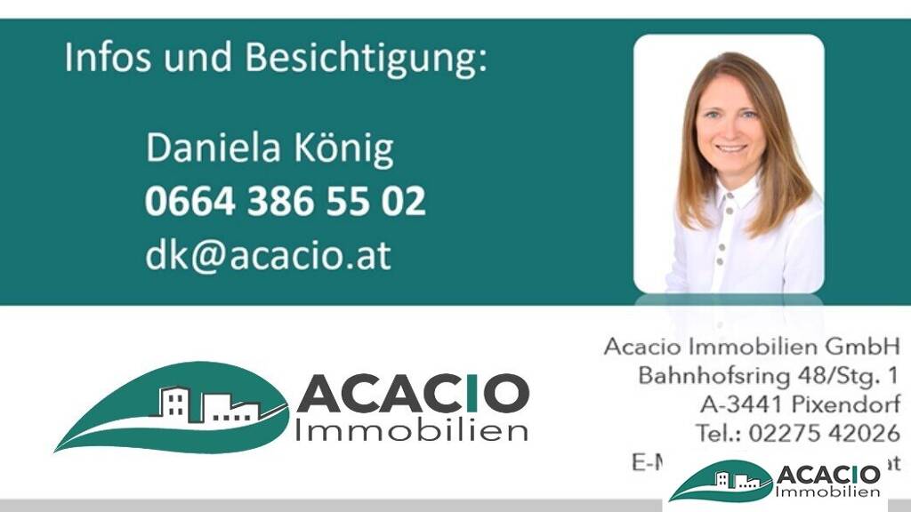 Gerne steht Frau Daniela König für weitere Informationen unter der Tele.nr.: 0664/ 386 55 02 oder unter der e-mail: dk@acacio.at zur Verfügung.