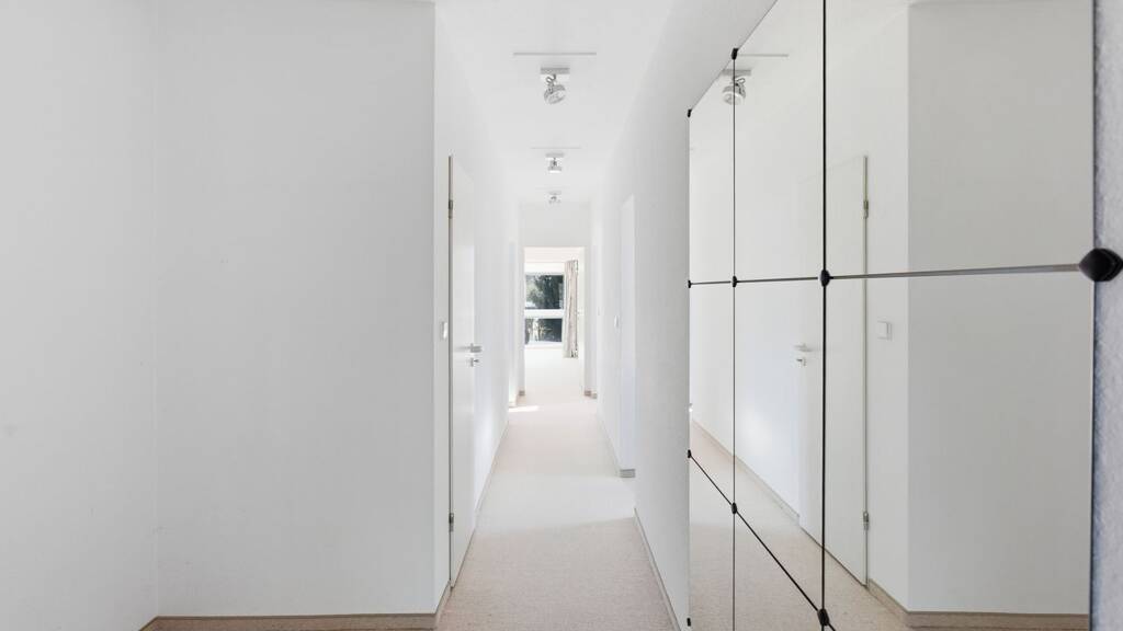 Im Mittelpunkt der Wohnung steht der großzügige Wohn- und Essbereich mit offener Küche. Hier entsteht ein einladender Lebensmittelpunkt, der Raum für gemeinsame Zeit, Kochen und Entspannen schafft. Die vorhandene Einbauküche fügt sich harmonisch ein und unterstreicht den wohnlichen Charakter. Von hier aus gelangen Sie direkt auf die ca. 15 m² große Sonnenterrasse - ein echtes Highlight. Mit ihrem schönen Blick in den Garten und die Nachbarschaft wird sie schnell zum Lieblingsplatz für ruhige Morgenstunden oder entspannte Abende im Freien. Die drei weiteren Zimmer sind hell, gut geschnitten und vielseitig nutzbar - ob als Schlafzimmer, Kinderzimmer oder Homeoffice. Besonders charmant ist das Zimmer am anderen Ende der Wohnung mit seinem verglasten Erker, der für eine freundliche Lichtstimmung und eine besondere Atmosphäre sorgt. Ein praktischer Abstellraum im Flur ergänzt das Raumangebot sinnvoll und schafft zusätzlichen Stauraum im Alltag. Das Tageslichtbad ist komfortabel ausgestattet und verfügt neben einer Badewanne auch über eine Dusche sowie zwei Waschbecken - ideal für den Alltag und die gleichzeitige Nutzung. Die Bodenbeläge bestehen aus Fliesen sowie Auslegware/Teppich und unterstreichen den gepflegten Gesamteindruck der Wohnung.