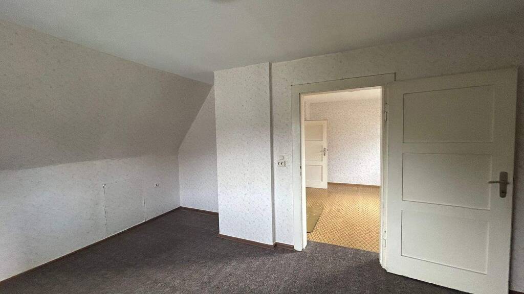 Über die Treppe gelangen Sie in das Obergeschoss mit einer Fläche von ca. 45 m², wo drei weitere Räume zur Verfügung stehen. Diese lassen sich flexibel als Kinderzimmer, Büro oder Hobbyräume nutzen - perfekt für eine kleine Familie oder Paare, die sich ein Zuhause mit vielen Gestaltungsmöglichkeiten wünschen.
