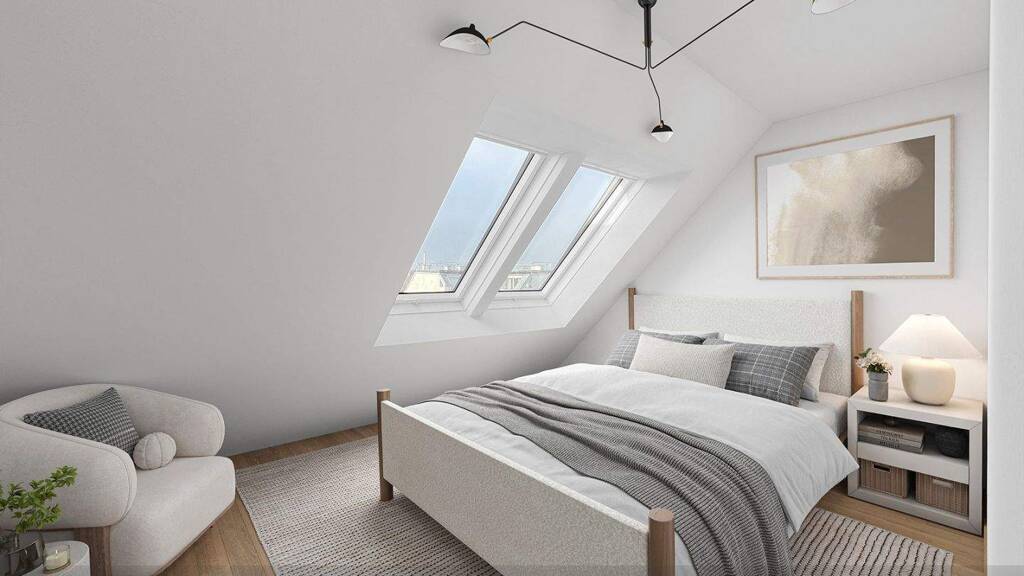 Großzügige 4-Zimmer-Residenzen mit Balkon im 4. Obergeschoss und im ersten Dachgeschoss sowie exklusive 3-Zimmer-Dachwohnungen mit Terrassen im zweiten Dachgeschoss bieten lichtdurchflutete Räume, durchdachte Grundrisse und ein außergewöhnliches Wohngefühl über den Dächern der Stadt. Die geplante Fertigstellung ist bis Sommer 2026 vorgesehen.