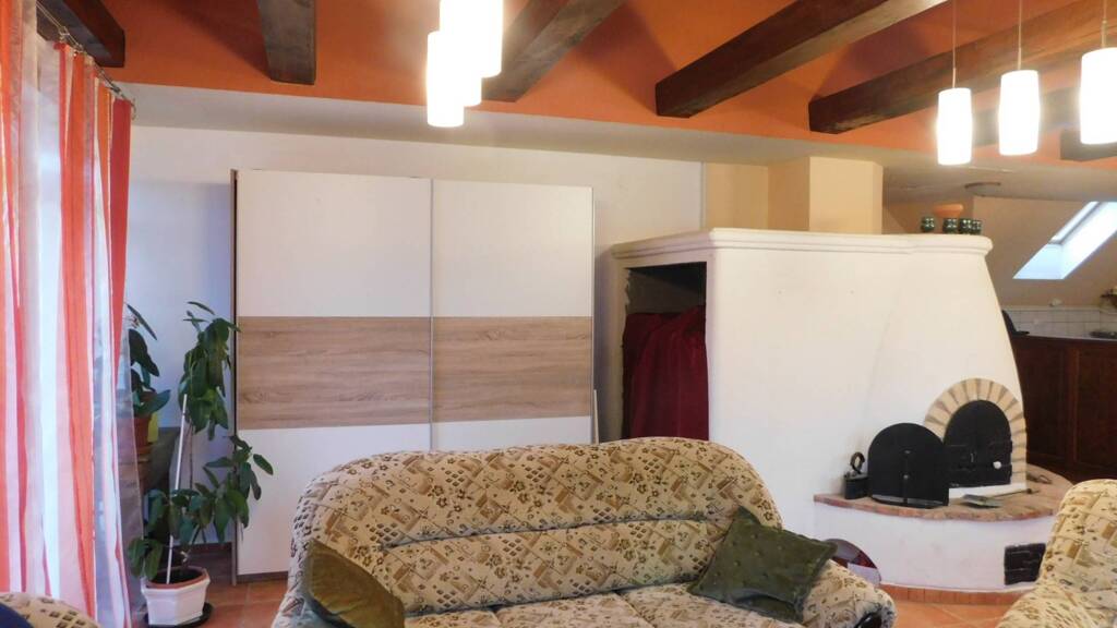 In den Wohnräumen im Dachgeschoss ist Klimaanlage vorhanden, im Wohnzimmer wurde ein eingebauter Backofen-Pizzaofen eingebaut.