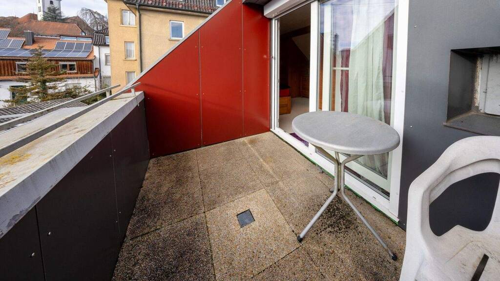 Das Obergeschoss bildet den Wohnmittelpunkt des Hauses. Eine offene Wohnküche mit angrenzendem Essbereich schafft eine heimelige Wohnatmosphäre, während der gemütliche Wohnbereich mit Schwedenofen für behagliche Wärme sorgt. Von hier aus gelangt man auf die großzügige Dachterrasse, die dank ihrer Süd-/Westausrichtung den ganzen Tag über Sonne bietet. Der Ausblick auf das Aulendorfer Schloss sowie den Kirchturm ist ein echtes Highlight und sorgt für ein urbanes Wohngefühl mit viel Charme. Ein weiteres WC und ein Flur mit Treppenaufgang ins Dachgeschoss ergänzen diese Etage.