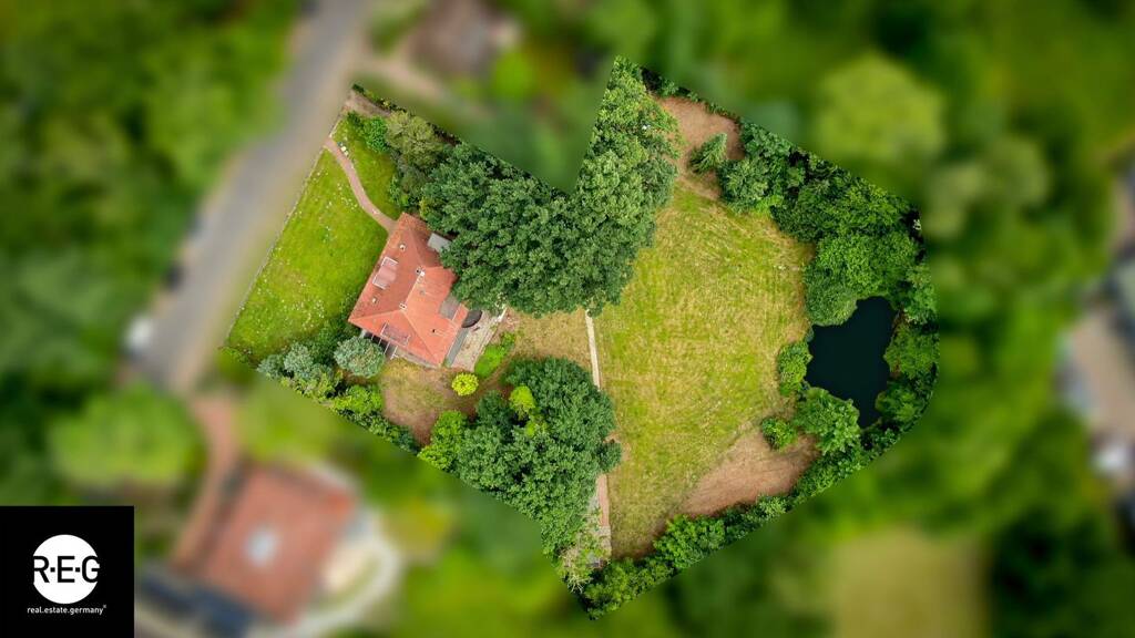 Das weitläufige Grundstück mit einer Fläche von rund 5.242?m² fügt sich harmonisch in die umgebende Natur ein. Ein großzügiger Naturteich, harmonisch eingebettet in das parkähnliche Idyll, bildet das eindrucksvolle Highlight des Anwesens und unterstreicht dessen unverwechselbaren Charme und erhabene Eleganz. Von gewachsenem Baumbestand und geschwungenen Gartenwegen umrahmt, bietet der Teich ebenso Ruhe und Erholung als auch vielfältige gestalterische Möglichkeiten für Naturliebhaber und Gartenvisionäre. Blickgeschützte Rasenflächen erzeugen eine Parkatmosphäre, die man in dieser Form nur selten findet.