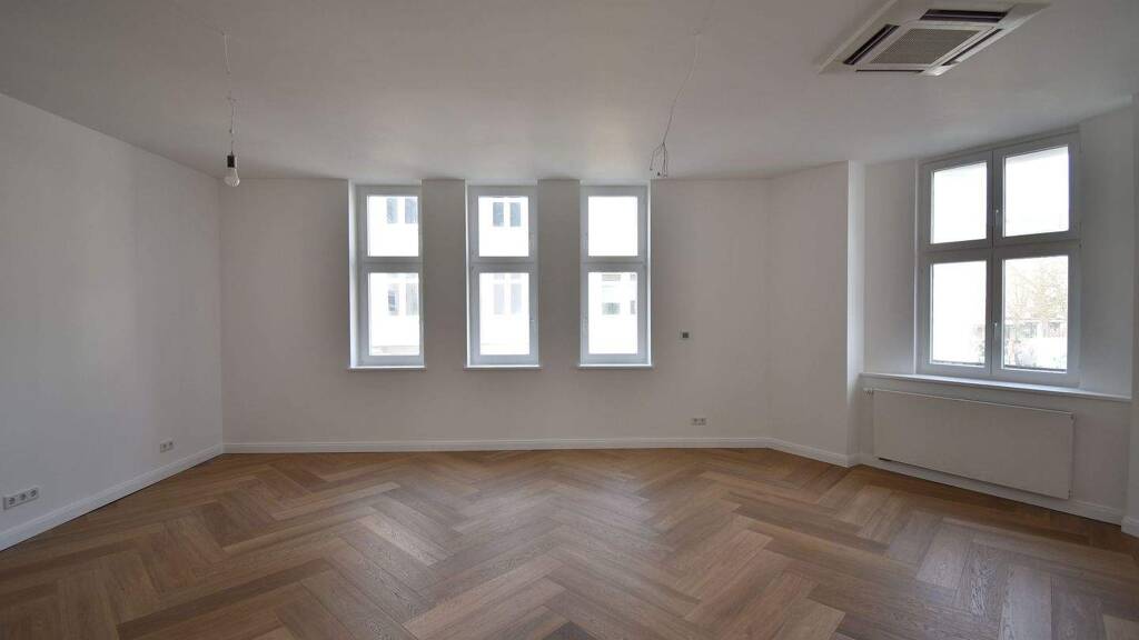 In begehrter Lage von Düsseldorf-Oberkassel überzeugt diese hochwertig neu geschaffene Wohnung im ersten Obergeschoss durch eine gelungene Verbindung aus klassischem Altbaucharme und zeitgemäßem Wohnkomfort. Der Eingangsbereich geht fließend in eine offene Diele über, die den Weg in den großzügigen Wohn- und Essbereich mit integrierter Küche eröffnet. Die klare Raumstruktur sorgt für ein angenehmes Wohngefühl mit viel Offenheit und Licht. Das Badezimmer, direkt von der Diele aus zugänglich, ist ein echtes Highlight: Eine außergewöhnlich großzügige, offen gestaltete Dusche fügt sich nahtlos in das Raumkonzept ein und verleiht dem Bad eine moderne, elegante Note. Ergänzt wird die Wohnung durch einen separaten Hauswirtschaftsraum mit Anschlüssen für Waschmaschine und Trockner. Der weitläufige Wohn- und Essbereich bildet das Zentrum der Wohnung, von dem aus das ruhig gelegene Schlafzimmer erreichbar ist. Hohe Decken, große Fensterflächen und eine durchgehend hochwertige Ausführung schaffen ein stilvolles, lichtdurchflutetes Ambiente. Eine vollumfängliche Klimatisierung sorgt zusätzlich für maximalen Wohnkomfort.