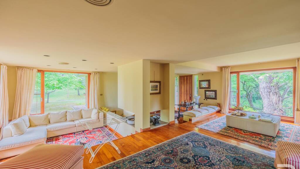 Das Haus ist umgeben von einem sorgfältig angelegten Garten, welcher durch seinen alten Baumbestand eine verträumte Atmosphäre zaubert. Mit seiner stimmungsvollen Beleuchtung verwandelt er sich in den Abendstunden in eine kleine, private Oase. Das weitläufige Anwesen erstreckt sich auf einer Fläche von zwei Hektar, bepflanzt mit vierzig Olivenbäumen, die an das toskanische Flair erinnern. Ihr Fahrzeug können Sie in der zur Villa gehörenden Doppelgarage unterbringen, um es vor den Witterungseinflüssen zu schützen.