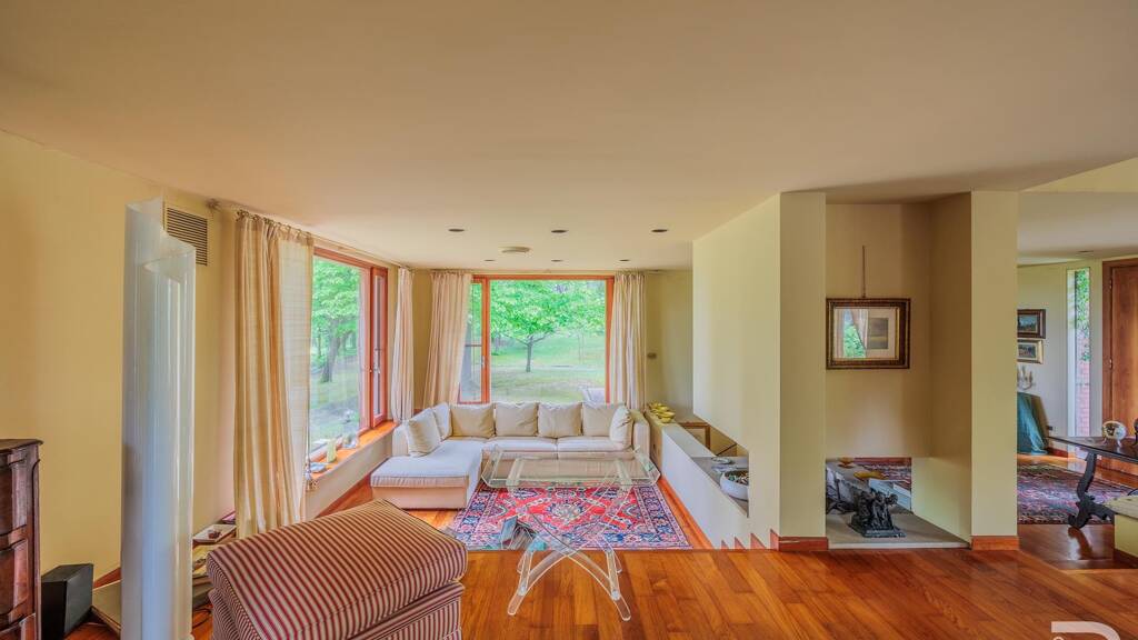 Sobald Sie die Villa betreten, werden Sie den wertvollen Parkettboden bemerken, der jedem Raum einen Hauch von Eleganz und Wärme verleiht. Das Herz des Hauses bildet zweifellos das Wohnzimmer, das mit einem hochwertigen Kamin ausgestattet ist, der Ihre Winterabende in ein gemütliches und warmes Ambiente taucht. Die großen Fenster lassen viel natürliches Licht herein und ermöglichen einen Blick auf das Grundstück. Eine Besonderheit dieser Villa ist, dass jedes der Zimmer mit einer Ankleide und einem eigenen Badezimmer ausgestattet ist, was jedem Bewohner einen hohen Grad an Komfort und Privatsphäre garantiert. Für zusätzlichen Komfort sorgt die Klimaanlage, die das ganze Haus gleichmäßig kühlt und für eine angenehme Temperatur an den warmen Sommertagen sorgt.