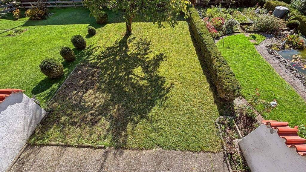 Dieses gepflegte Reihenmittelhaus wurde ca. 1975 errichtet, überzeugt mit solider Massivbauweise, durchdachtem Grundriss und einer ruhigen, sonnigen Lage. Die Immobilie bietet Ihnen auf ca. 162 m² Wohnfläche - verteilt auf zwei Vollgeschosse sowie ein ausgebautes Dachgeschoss - viel Raum für individuelle Wohnideen und familiäres Wohlbefinden. Bereits beim Eintreten begrüßt Sie ein praktischer Eingangsbereich mit Garderobe und Gästetoilette. Die geräumige Küche lässt sich individuell gestalten und ist über eine Durchreiche mit dem angrenzenden Essbereich verbunden. Das großzügige Wohn- und Esszimmer bildet das Herzstück des Hauses und bietet direkten Zugang zur südlich ausgerichteten Terrasse und dem liebevoll angelegten Garten - ideal zum Entspannen und Genießen. Im Obergeschoss erwarten Sie ein großes Elternschlafzimmer, zwei Kinder- oder Arbeitszimmer sowie ein komfortables Familienbad mit Badewanne, Dusche, WC und Doppelwaschtisch. Zwei der Schlafzimmer führen auf den sonnigen Südbalkon mit schönem Ausblick ins Grüne und in die Berge. Das ausgebaute Dachgeschoss verfügt über zwei weitere Zimmer sowie ein separates WC mit Waschbecken - perfekt für Gäste, Homeoffice oder Jugendliche. Im Kellergeschoss finden Sie zwei praktische Abstellräume sowie den Heizungsraum. Die Beheizung erfolgt über eine Ölzentralheizung, die ca. 2000 erneuert wurde. Zum Haus gehört außerdem eine großzügige Doppelgarage - ausreichend Platz für Ihre Fahrzeuge oder zusätzlichen Stauraum. Die Immobilie befindet sich in einem gepflegten Zustand. Kleinere Modernisierungen im Innenbereich bieten Ihnen die Möglichkeit, das Haus nach Ihren eigenen Vorstellungen zu gestalten.