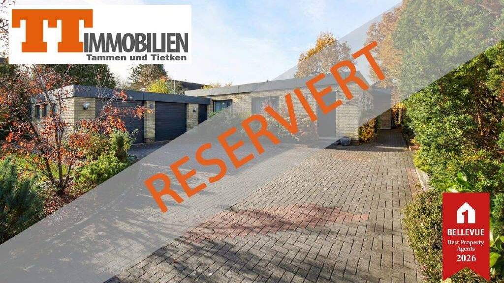 Wer in das beschauliche Dorf Fedderwarden hineinfährt, spürt praktisch sofort die ländliche Ruhe, die diesen Stadtteil Wilhelmshavens so besonders macht. Zwischen gepflegten Einfamilienhäusern und traditionellen Bauernhöfen öffnet sich eine sehr harmonische Atmosphäre. Hier liegt in einer ruhigen Sackgasse dieser außergewöhnliche Flachdach-Bungalow auf einem beeindruckenden 1.383 m² großen Grundstück.