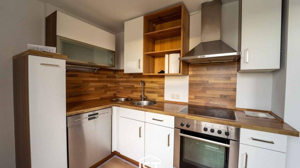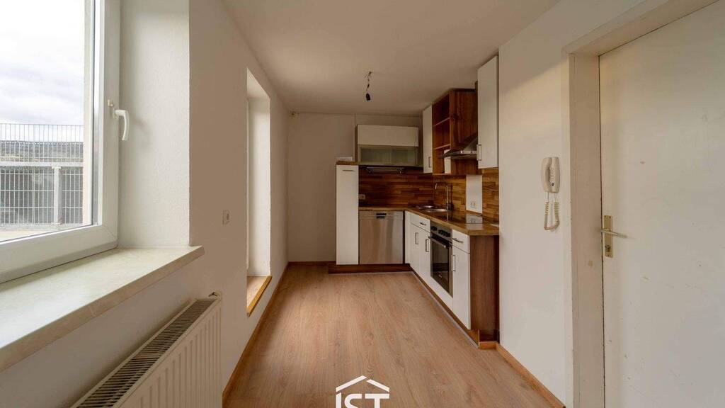 Bereits beim Betreten der Wohnung empfängt Sie eine Kochnische mit Einbauküche. Hier steht ausreichend Platz für einen gemütlichen Essbereich zur Verfügung. Angrenzend befinden sich das ruhige Schlafzimmer sowie ein getrenntes Wohnzimmer. Ein zusätzliches Zimmer kann als Büro oder Kinderzimmer genutzt werden. Das Tageslichtbad ist mit einer Badewanne und einem WC ausgestattet. Abstellnischen in den Räumen bieten Platz, um Dinge zu verstauen.