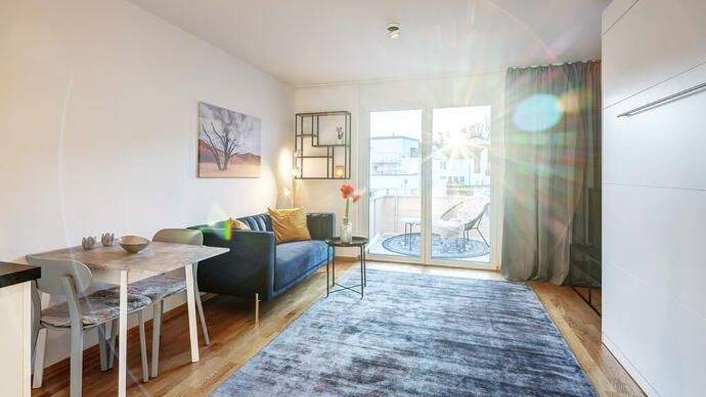Das schöne Apartment liegt in Traunstein unweit des Klinikums. Die Wohnung verfügt über eine moderne Möblierung im kombinierten Wohn- und Schlafbereich. Das praktische Schrankbett sorgt am Tag für viel Platz zum Wohnen. Direkt neben dem Schrankbett befindet sich ein 2 Meter großer Kleiderschrank. Die offene, zeitgemäße Küche ist umfangreich ausgestattet. Der angrenzende Esstisch kann für bis zu vier Personen ausgezogen werden. Das hochwertige Badezimmer offeriert eine Glasdusche.