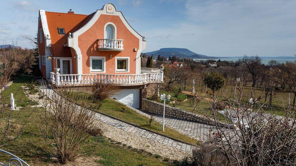 Dieses Einfamilienhaus besticht durch seine hervorragende und unverbaubare Lage mit großem Garten und herrlichem Panoramablick auf den Plattensee. Sie können von jedem Fenster aus den herrlichen Seeblick genießen! Diese gepflegte Immobilien wurde im Jahr 2002 in hochwertiger Bauweise auf einem ca. 1540 m² großen Grundstück gebaut. Die ca. 200 m² Wohnfläche bietet einen offenen Wohn-/Essbereich mit Kachelofen, Küche, vier Schlafzimmer, vier Bäder, Sauna, Weinkeller sowie diverse Hauswirtschaft-/Nebenräume. Vom Wohnzimmer aus gelangen Sie direkt auf die Terrasse, von der aus Sie einen herrlichen Blick auf den Plattensee und die Umgebung genießen können. Der Garten ist liebevoll angelegt mit schönen Obst- und Zierpflanzen, einem Pavillon, gepflasterten Wegen mit vielen Sitzgelegenheiten, Blumen u.v.m.