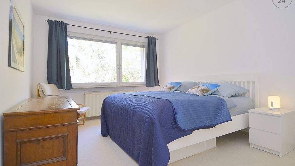 Im ersten Schlafzimmer befinden sich ein Doppelbett (180 x 200 cm), eine Kommode, ein Sessel und ein Kleiderschrank. Im zweiten Schlafzimmer befinden sich ein Doppelbett (160 x 200 cm) und ein großzügiger Einbauschrank.