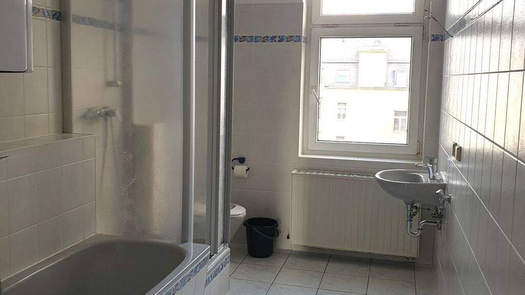 Die Vierzimmerwohnung im 3. Geschoss besteht aus vier großzügigen Zimmern (WG geeignet für 4 Personen), einer großen Küche und einem hellen Tageslichtbad mit Dusche und Wanne. Die längst überholte Gasetagenheizung wurde ersetzt durch elektrische Heizkörper. In der Wohnung befindet sich einen Gasetagenheizung, sodass keine Nebenkostenvorauszahlungen für Wärme gegenüber dem Vermieter bestehen. Im Innenhof befinden sich kostenfreie Parkplätze für Autos, die jedoch nur außerhalb der Öffnungszeiten des im EG befindlichen Gewerbes genutzt werden können.