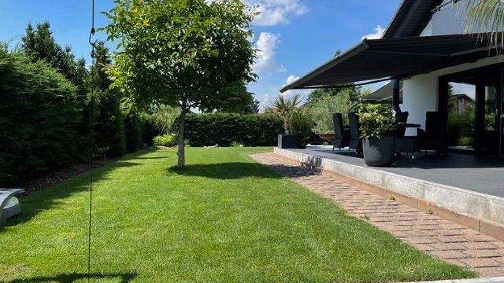 Ergänzt wird das Outdoor-Ensemble durch einen großzügigen Whirlpool, der den Wellnesscharakter zusätzlich betont. Darüber hinaus steht ein Gartenhaus zur Verfügung, in dem bereits die Voraussetzungen für die Integration einer Sauna geschaffen wurden - ideale Bedingungen für ein privates Spa im eigenen Zuhause. Diese schöne Gartenanlage mit der pflegeleichten Heckenbepflanzung (ca. 150 Bäume) gewährleistet ein hohes Maß an Privatsphäre und fügt sich zu einem stimmigen Gesamtbild zusammen.
