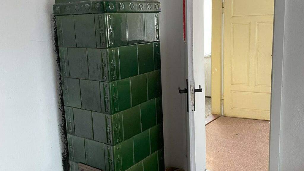 dezentrale Ofenheizung Zwei Kachelöfen: 1x Gründerzeit, 1x 80er Jahre, Kohlebadeofen im Bad
