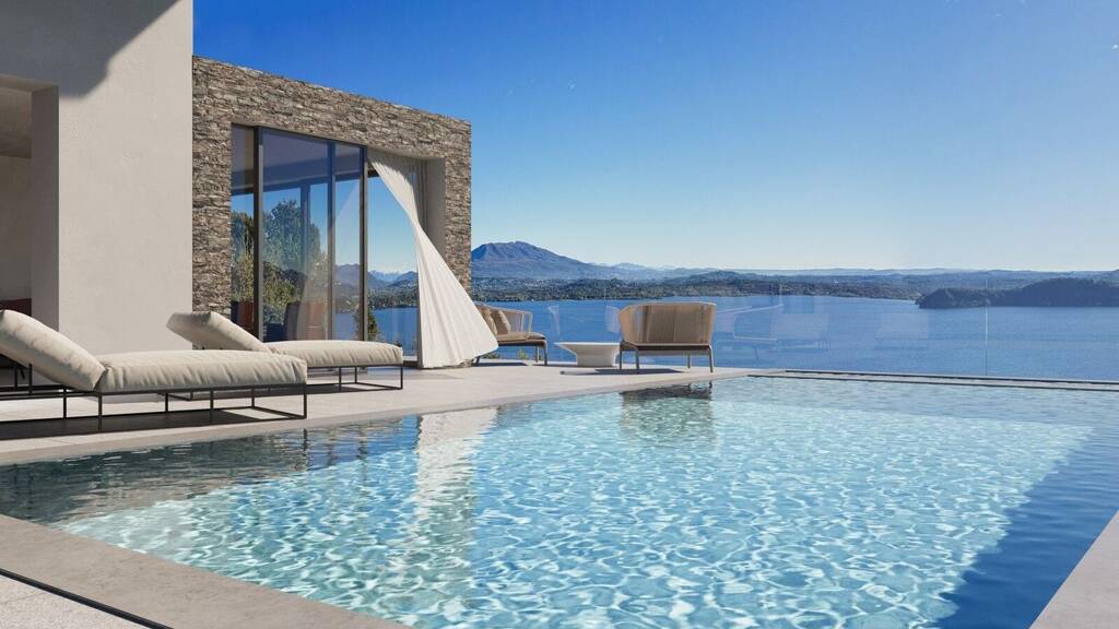 In einer exklusiven Panoramalage mit atemberaubendem Blick auf den Lago Maggiore und die umliegenden Berge wird eine neu gebaute, moderne Villa zum Verkauf angeboten. Das Gebäude erstreckt sich über zwei Etagen und verfügt über eine Fläche von über 300 m². Es bietet Erweiterungsmöglichkeiten, wie zum Beispiel Solargärten oder unterirdische Räume, um weitere Bedürfnisse zu erfüllen.