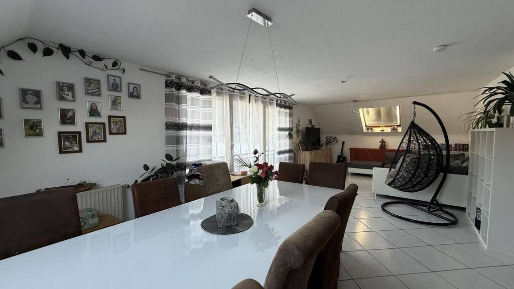 Im Jahr 1914 wurde hier ein kleines Wohnhaus mit großer Scheune errichtet. Diese Scheune wurde 1970 zum Wohnraum ausgebaut. So entstanden drei Wohneinheiten mit viel Platz. 1988 wurde das Dach gerichtet. In diesem Jahr wurden drei Garagen die vom Haus zugänglich sind neu errichtet. Bei der Wohnung unten links handelt es sich um eine 4 Zimmer-Wohnung, bestehend aus drei Schlafzimmern, einem Wohnzimmer sowie einer funktionstüchtigen Einbauküche. Das Bad wurde vor kurzem erneuert, das WC ist separat. Einige Fenster wurden 2019 erneuert. Die rechte Wohnung hat 2 1/2 Zimmer, Küche, Bad und ein separates WC. Die große 6 Zimmer-Wohnung im Dachgeschoss befindet sich in einem guten, modernisierten Zustand. Der lichtdurchflutete Wohn- und Essbereich bietet genug Platz für Familienfeste. Mit vier Schlafzimmern und einem geräumigen Büro hat man viele Gestaltungsmöglichkeiten. Die Wohnung hat zwei Badezimmer, das eine wurde 2021 erneuert und bietet neben der ebenerdigen Dusche auch ein Pissoir. 2018 wurde die moderne Einbauküche mit reichlich Platz eingebaut. Die Küche und die voll funktionsfähigen Geräte sind im Kaufpreis bereits enthalten. Der Zugang zur Bühne befindet sich in der Dachgeschoss-Wohnung. Dort befindet sich viel Stauraum und bisher ungenutzte Fläche.
